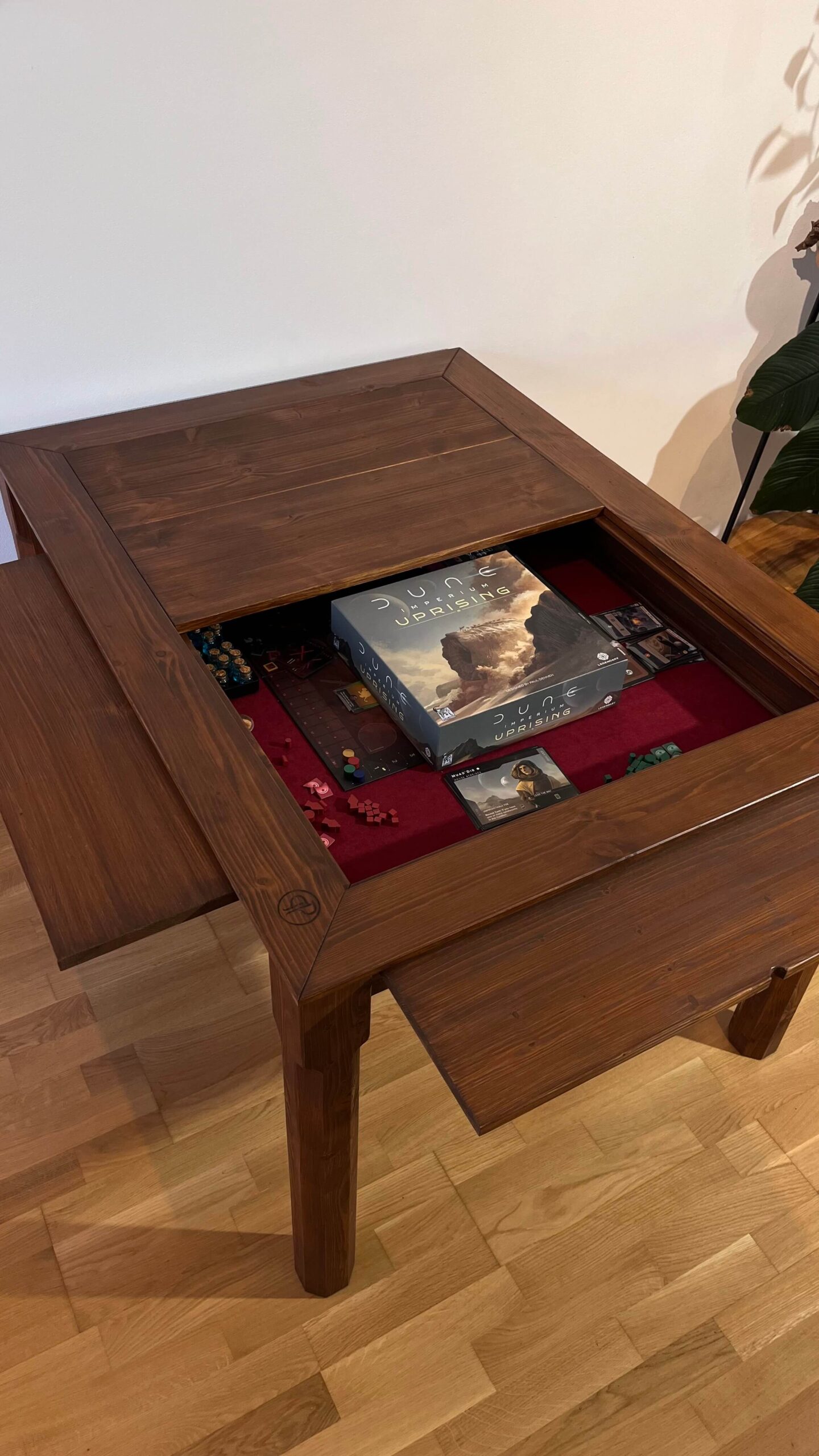 Stůl, který posune každé herní sezení o úroveň výš. Robustní a zároveň praktický základ pro deskovky, puzzle i dlouhé večery s přáteli. Navržený tak, aby byl modulární a šel přizpůsobit podle potřeby – díky přídavným odkládacím plochám, držákům na pití nebo jiným doplňkům.