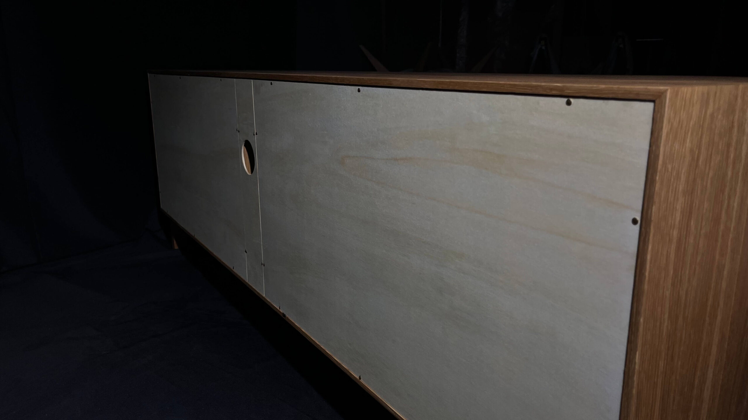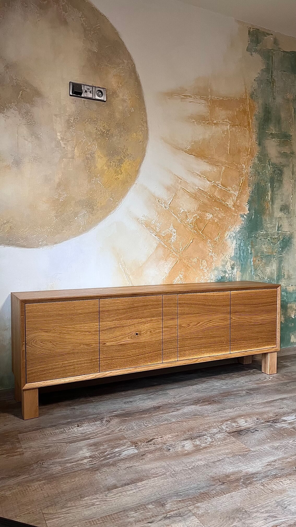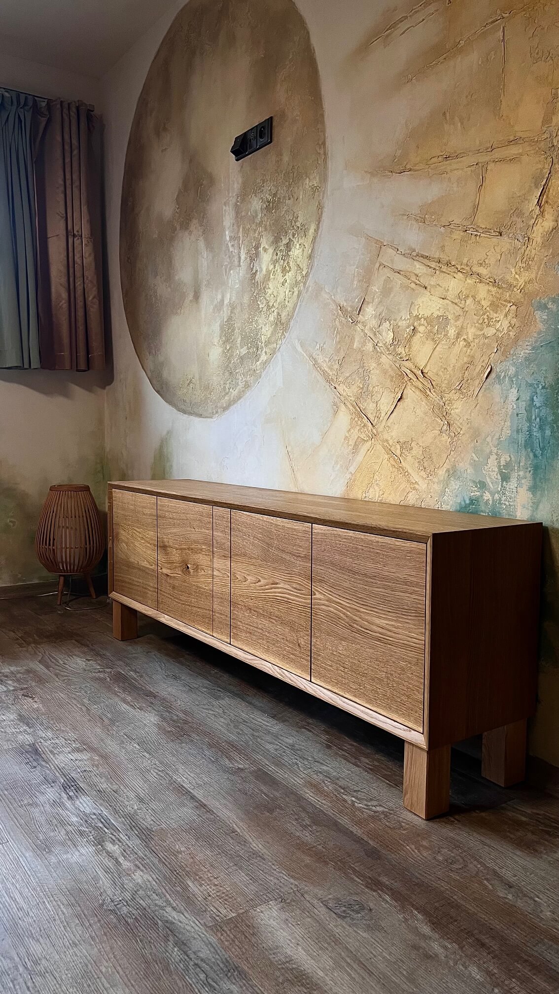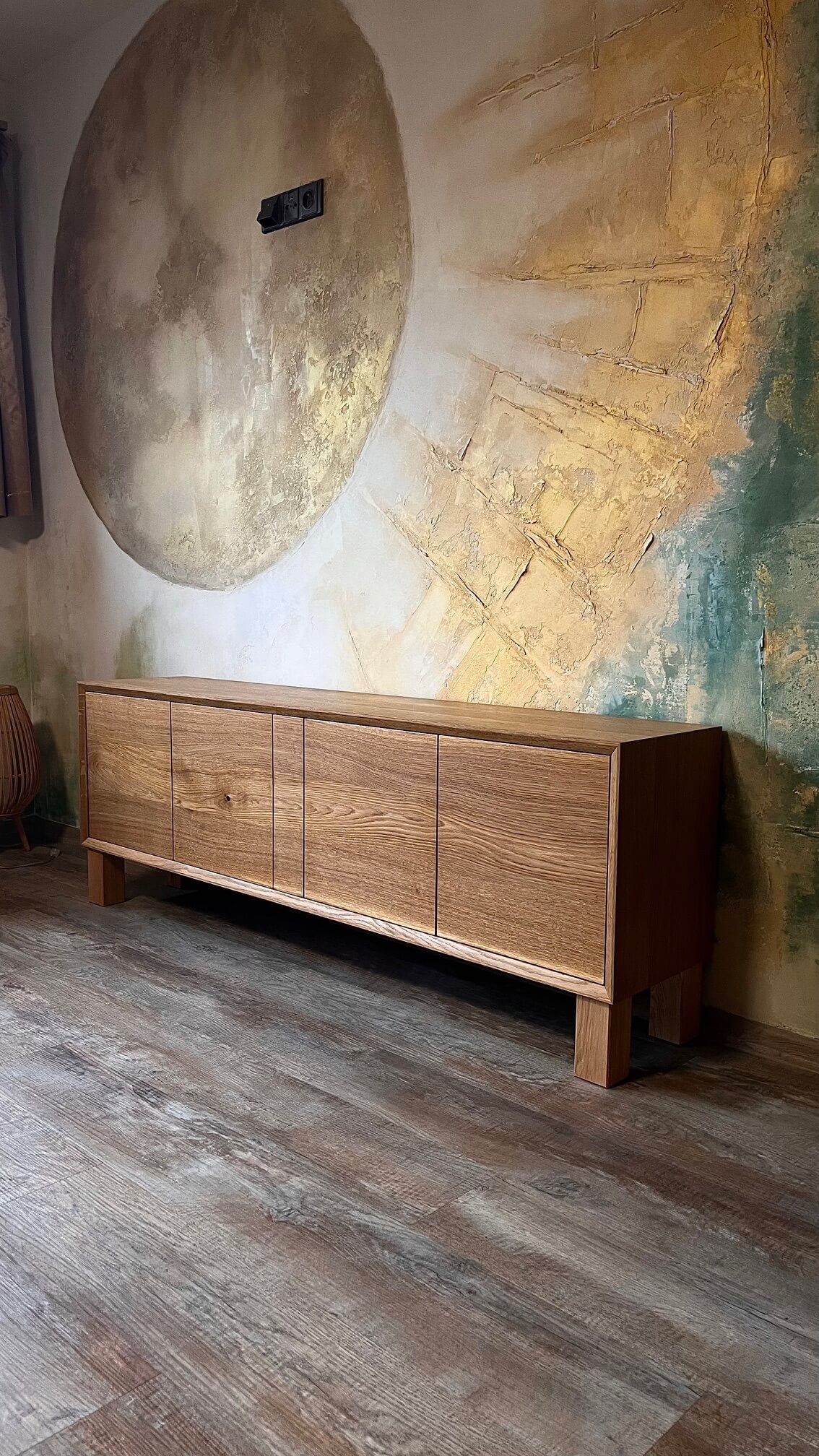 Původně navržena jako TV skříňka, dnes našla své místo jako nízká komoda v domácí jóga místnosti. Její klidný, vyvážený výraz a čisté linie přirozeně podporují atmosféru soustředění a harmonie.